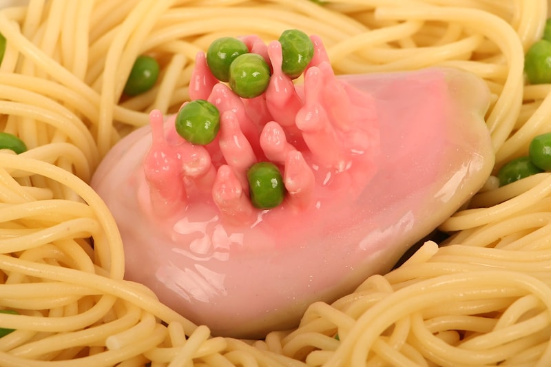Посуда, по сути, может быть обычной. Не нужно даже брать тарелку диаметром поменьше, как советуют в последнее время психологи и диетологи. Но Марайя Фохолзанг (Marije Vogelzang) сделала такие штучки из простых камешков, покрытых термостойким пищевым силиконом. Ее рецепт прост — нужно поместить эти объекты, точнее «объемы» (Volumes, как называется ее коллекция) в середину тарелки, и едоку сразу покажется, что еды на ней гораздо больше, чем есть на самом деле.